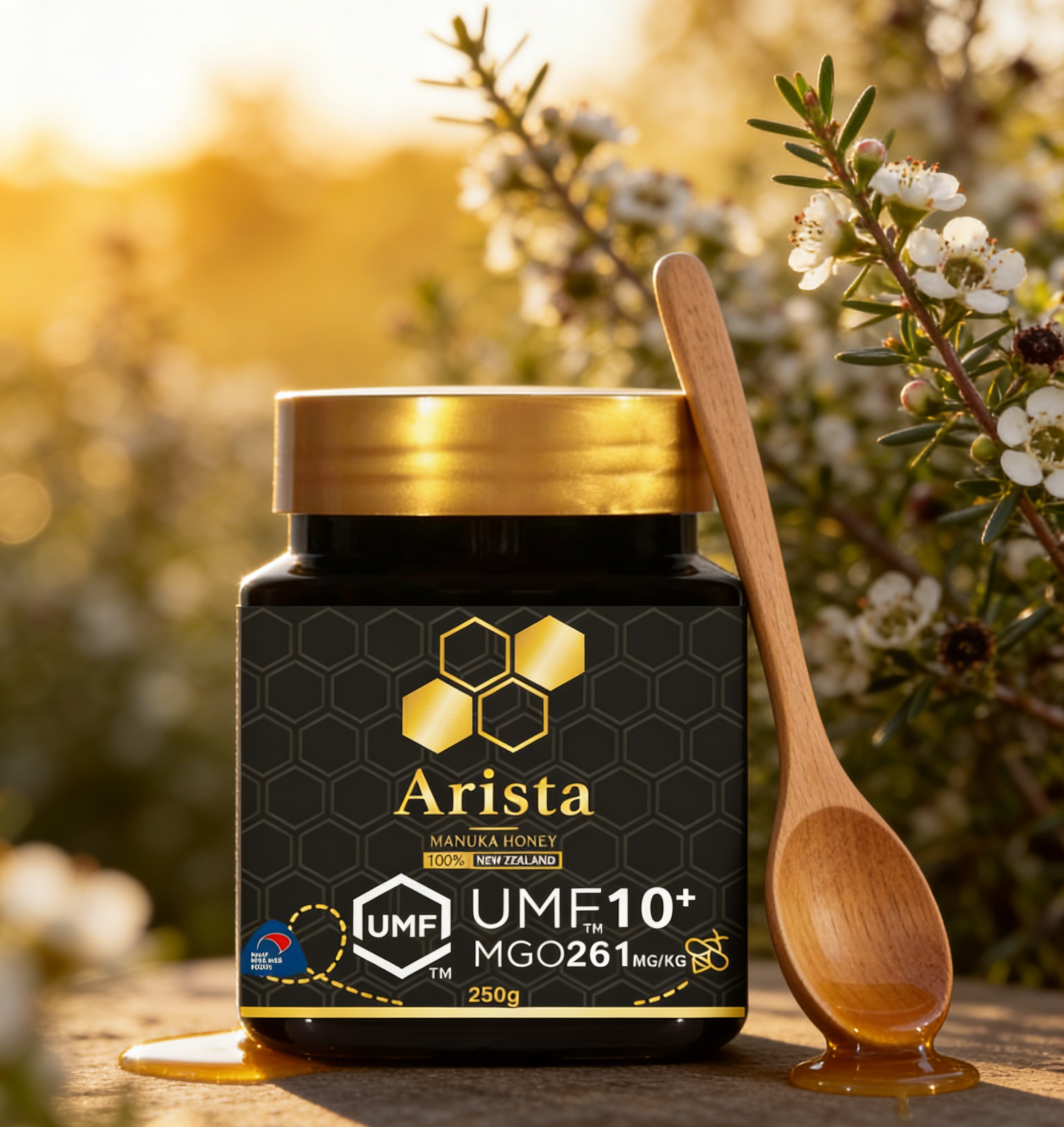 Unlike regular honey—often a mix of floral nectars, processed for consistent mildness—Mānuka honey is a monofloral honey, made exclusively from the nectar of New Zealand’s native Leptospermum scoparium (Mānuka tree), harvested during its short annual bloom. Its unprocessed, raw production locks in natural depth.